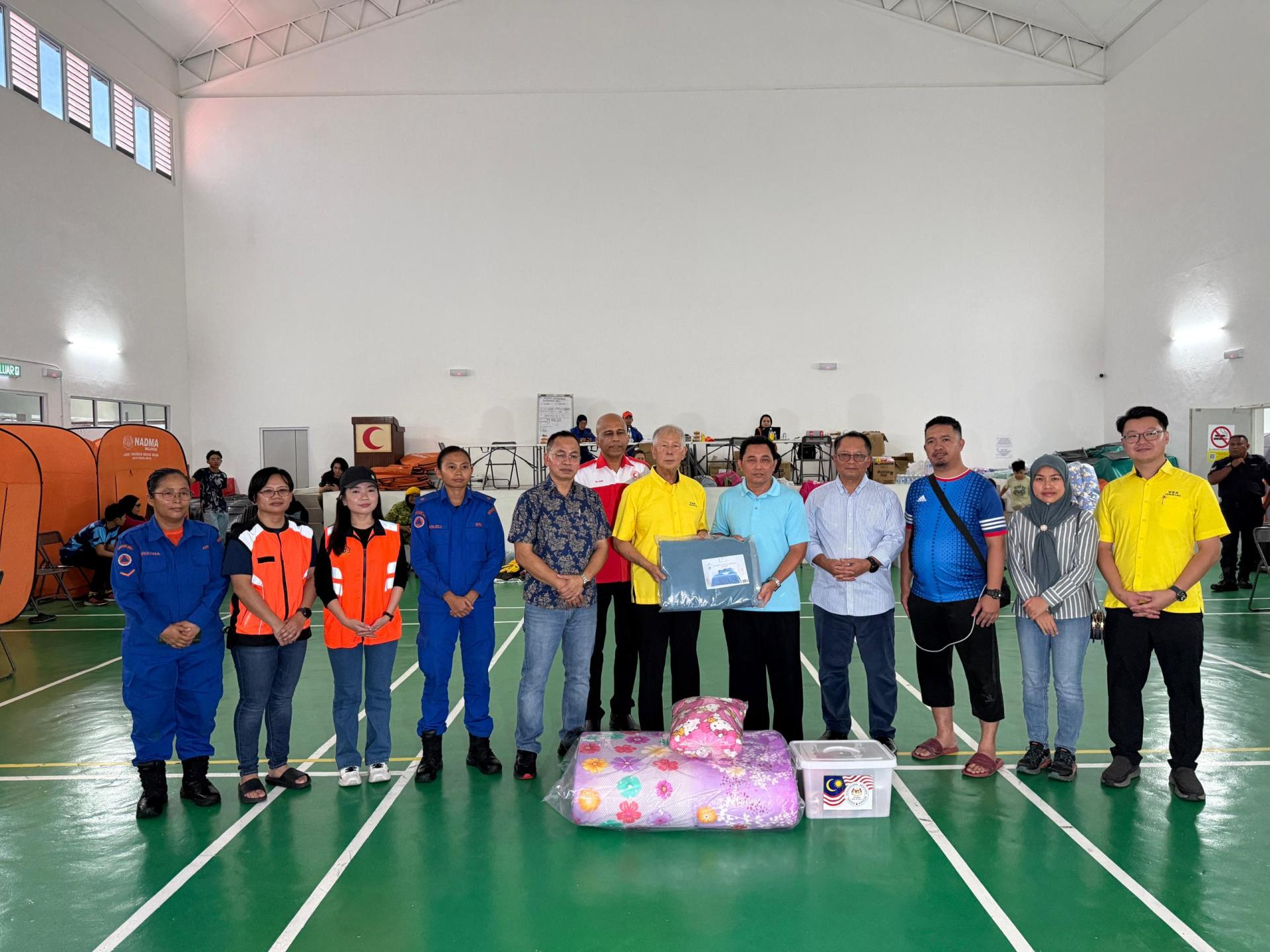 随行者包括美里省长嘉隆、美里警区主任李炳强助理总监、美里红新月会、美里民防部队代表等。他们共同巡视疏散中心设施、物资供应及灾黎基本需求,确保所有受影响家庭获得适当援助与临时安置。