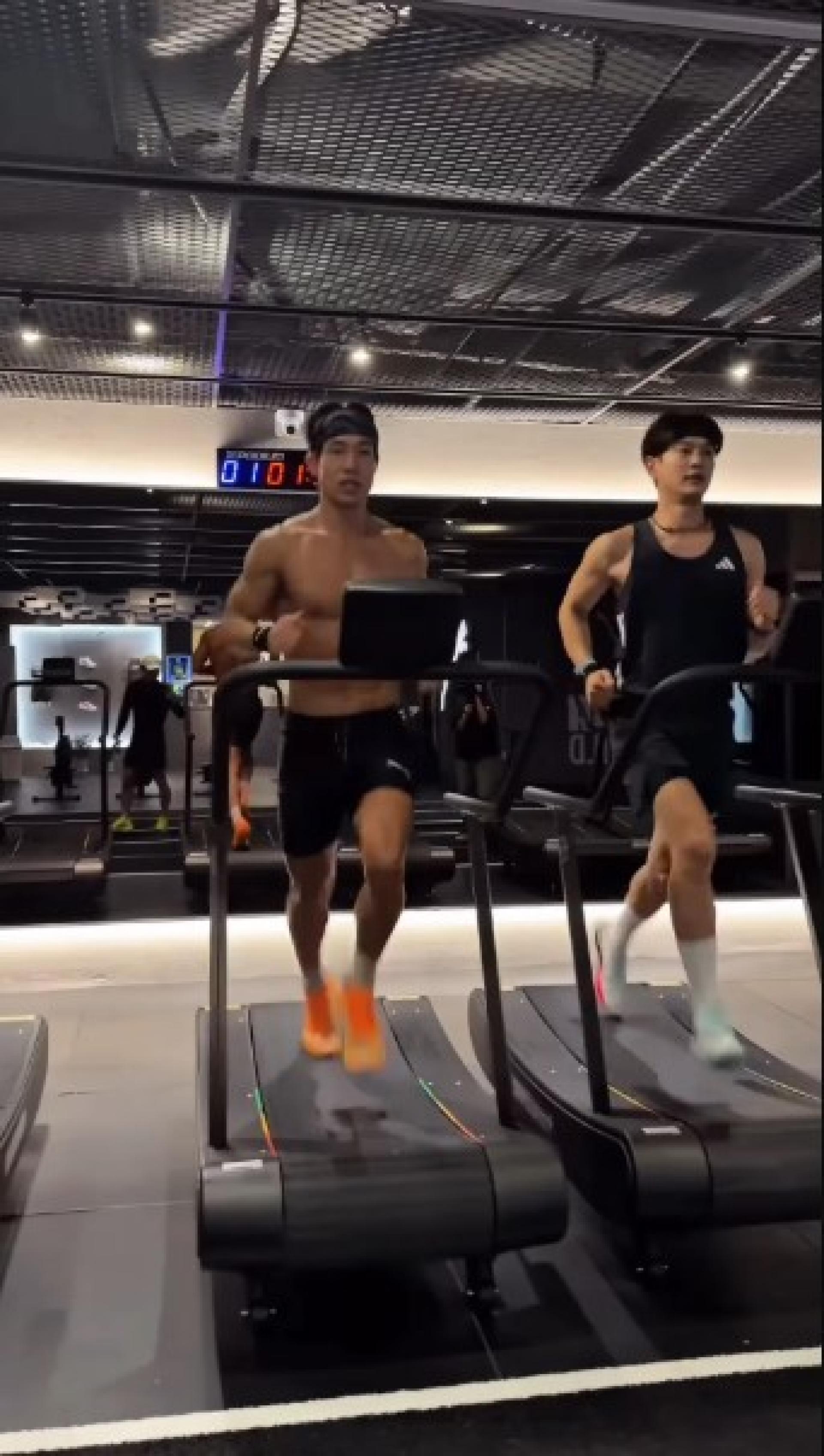 珉豪(右)与洪范锡搭档,在新加坡体能赛事Hyrox男子双人公开赛夺得亚军。 跑步早已成为珉豪日常训练中不可或缺的一部分。34岁的他,近年频繁地在社媒分享跑步和体能训练过程,展现出对健身的热爱。韩国艺人朴明洙(Park Myung-soo)近日在YouTube频道公开和他同游迪拜的视频,期间他们一同报名参加当地的五公里马拉松赛。珉豪在37万名参赛者中脱颖而出,以19分钟56秒的成绩夺得冠军,展现了专业跑者的实力,朴明洙则以35分钟5秒顺利完赛。