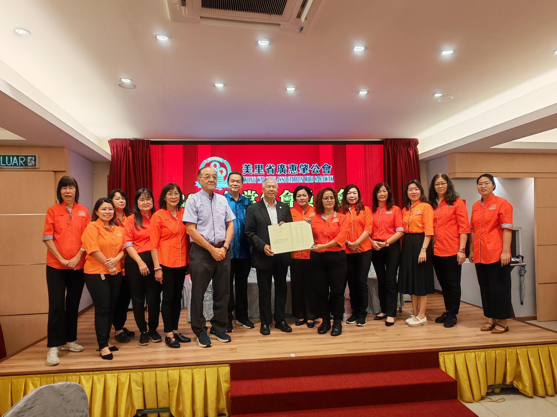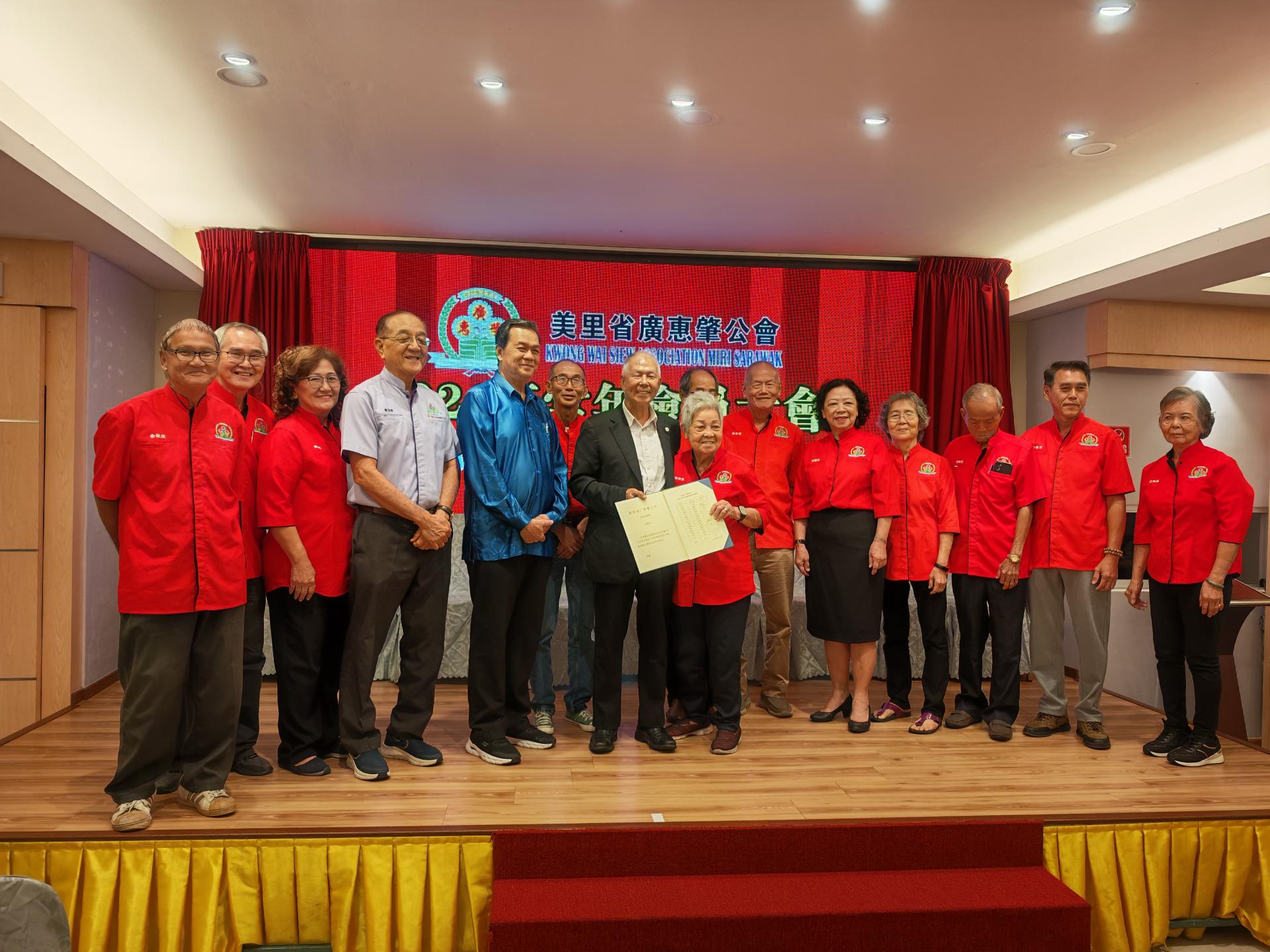 (本报美里12日讯)美里省广惠肇公会昨日在食为天海鲜餐厅召开2026年常年会员大会暨颁发新生宝宝红仪,并同步举行2026至2027年度理事会、青年团、妇女组及乐龄组就职典礼。